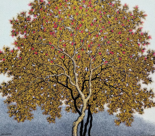 Acrylic On Tussar Silk